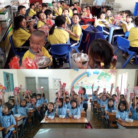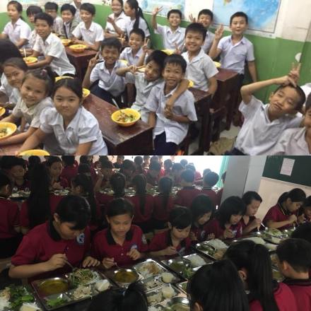 (2) Cung cấp suất ăn dinh dưỡng cho học sinh nghèo (Hiện đang lo cơm trưa vào các ngày thứ Hai, Tư, Sáu cho khoảng 400 học sinh của các Trường tình thương: Vĩnh Hội (Quận 4), Chợ Quán (Quận 5) và Tân Hưng (Quận 7).