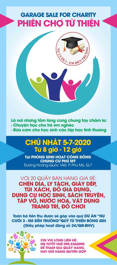 Chủ nhật ngày 5-7-2020 tại Chung cư Phú Mỹ – Quận 7, từ 8 giờ sáng hàng trăm người đã tấp nập đến với Phiên chợ Từ thiện – nơi mà cả người bán lẫn người mua đều cùng một mục đích là chung tay vì những hoàn cảnh khó khăn. Toàn bộ số tiền thu được từ Phiên chợ sẽ được dùng để chăm lo chuyện học của học sinh nghèo và cung cấp suất cơm dinh dưỡng miễn phí cho học sinh các Trường Tình Thương.