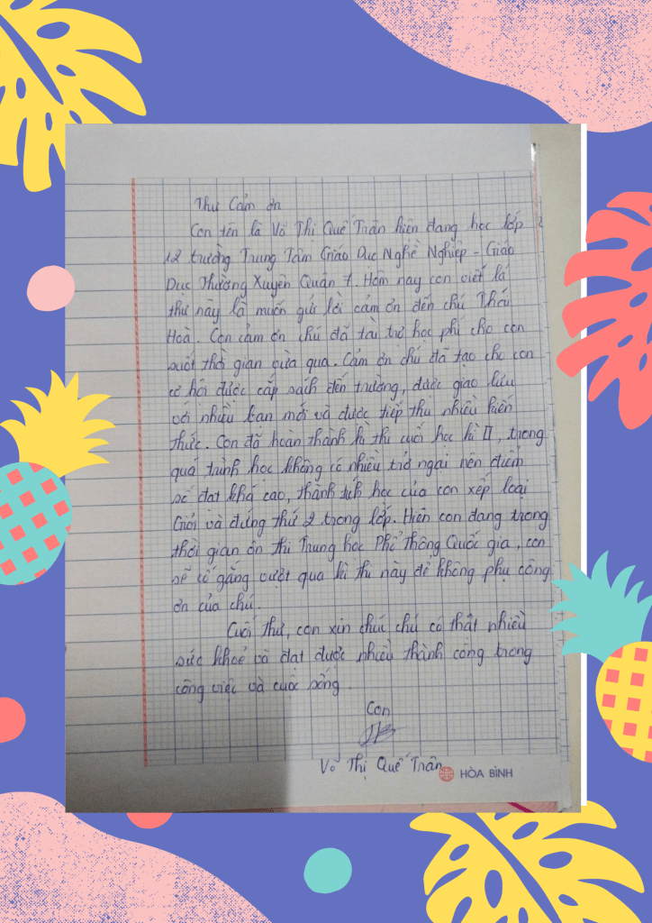 III/ THƯ CẢM ƠN