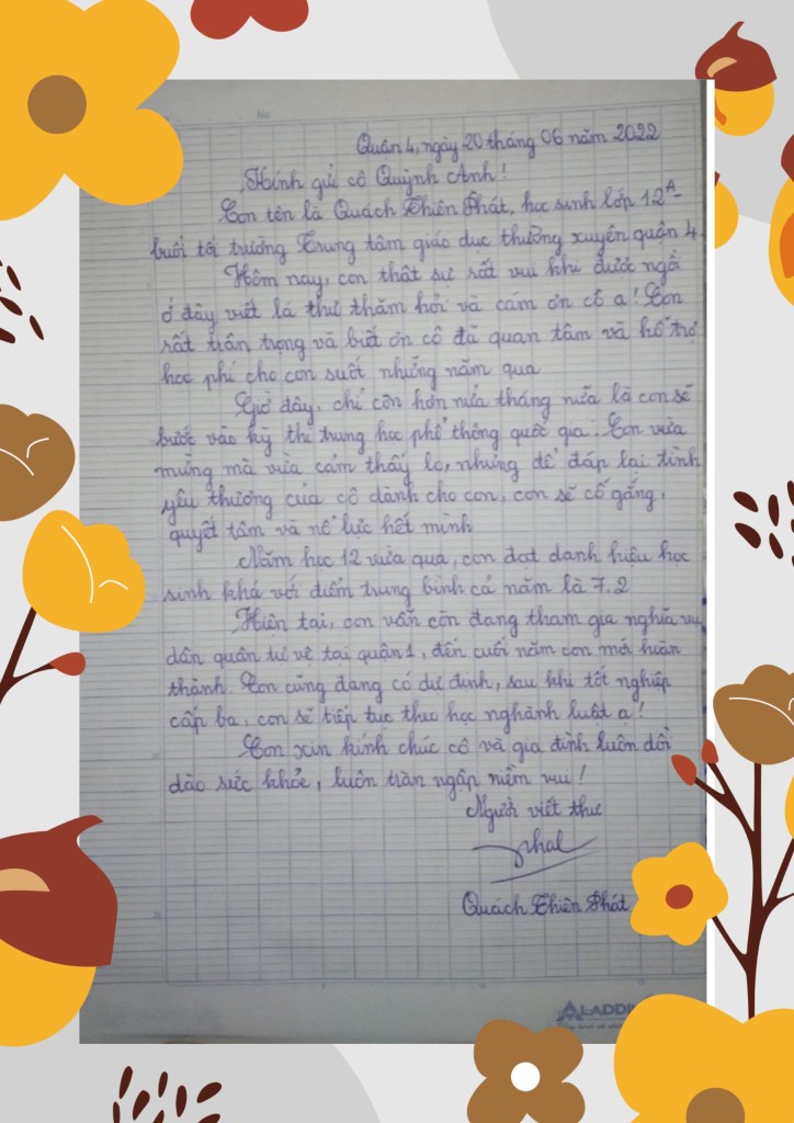 | 029 | 2002 | 301/31/8C Trần Xuân Soạn, P. Tân Kiểng, Quận 7 | Bành Lý Quyên (Mẹ) | Cô Quỳnh Anh |