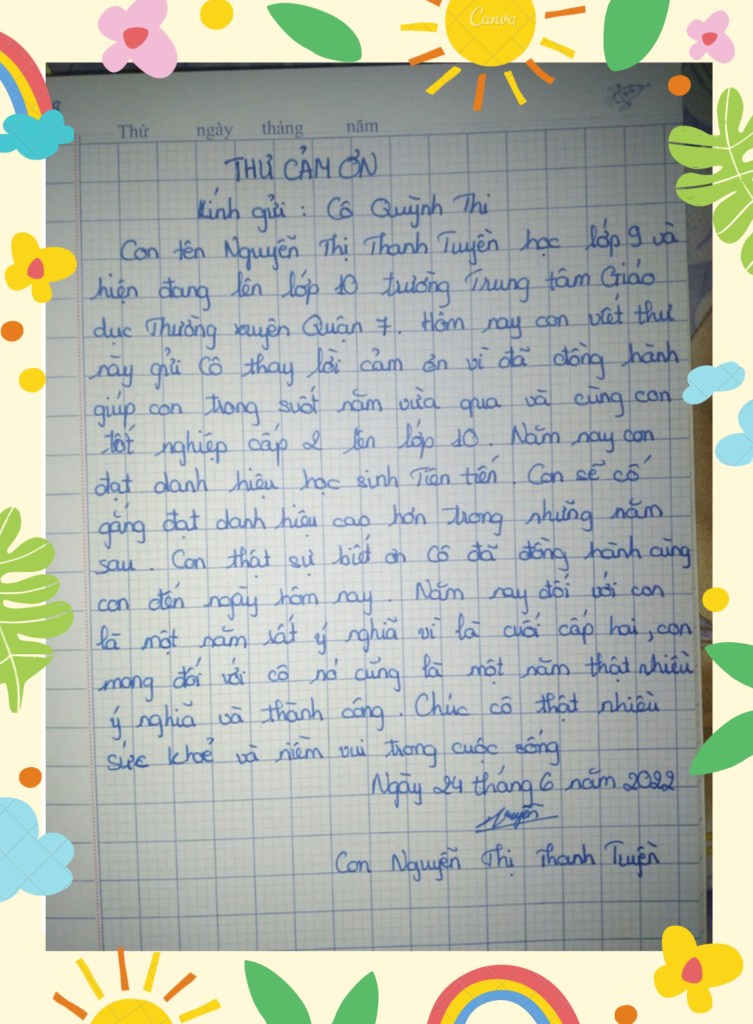 III/ THƯ CẢM ƠN