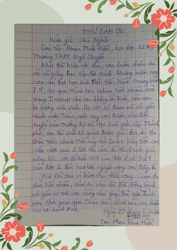 III/ THƯ CẢM ƠN