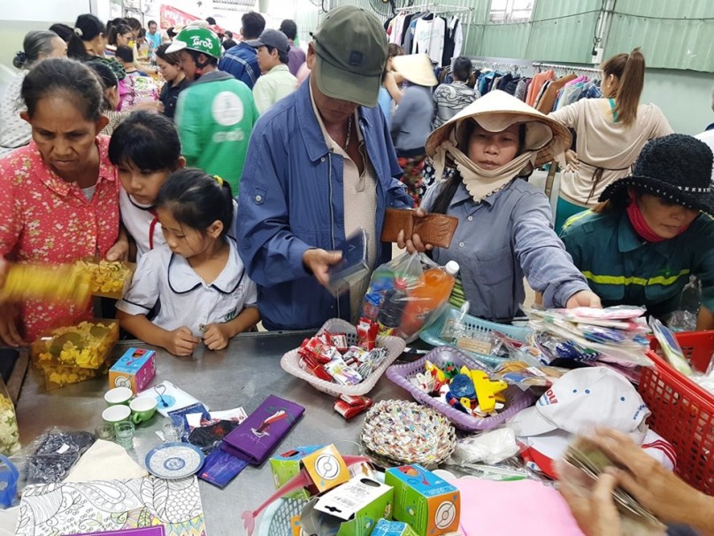 Vậy nhưng ai cũng muốn mua thật nhiều, thật nhiều vì… rẻ quá nên sẽ đi 2 – 3 vòng để mua nhu yếu phẩm. Những tình nguyện viên bán hàng biết vậy nhưng cũng vui vẻ bán tiếp vì “họ khó khăn mà”.