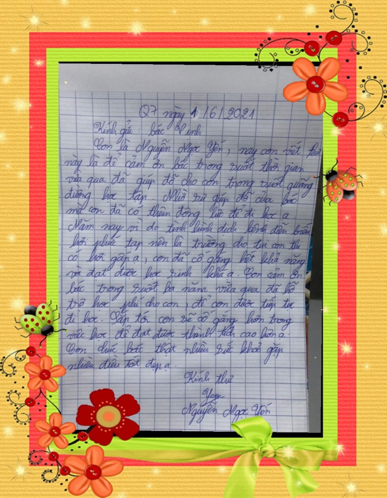 | Chi phí năm học: – Tổng chi phí cho 79 học sinh Năm học 2020-2021: 513,552,000 đồng (Thấp nhất là 3,663,000 đồng (Lớp 8) – Cao nhất là 20,563,000 đồng (Đại học)) => Bình quân: 6,500,000 đồng/1 học sinh/ 1 năm học |