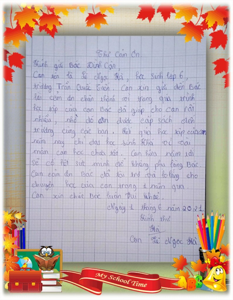 | Chi phí năm học: – Tổng chi phí cho 79 học sinh Năm học 2020-2021: 513,552,000 đồng (Thấp nhất là 3,663,000 đồng (Lớp 8) – Cao nhất là 20,563,000 đồng (Đại học)) => Bình quân: 6,500,000 đồng/1 học sinh/ 1 năm học |
