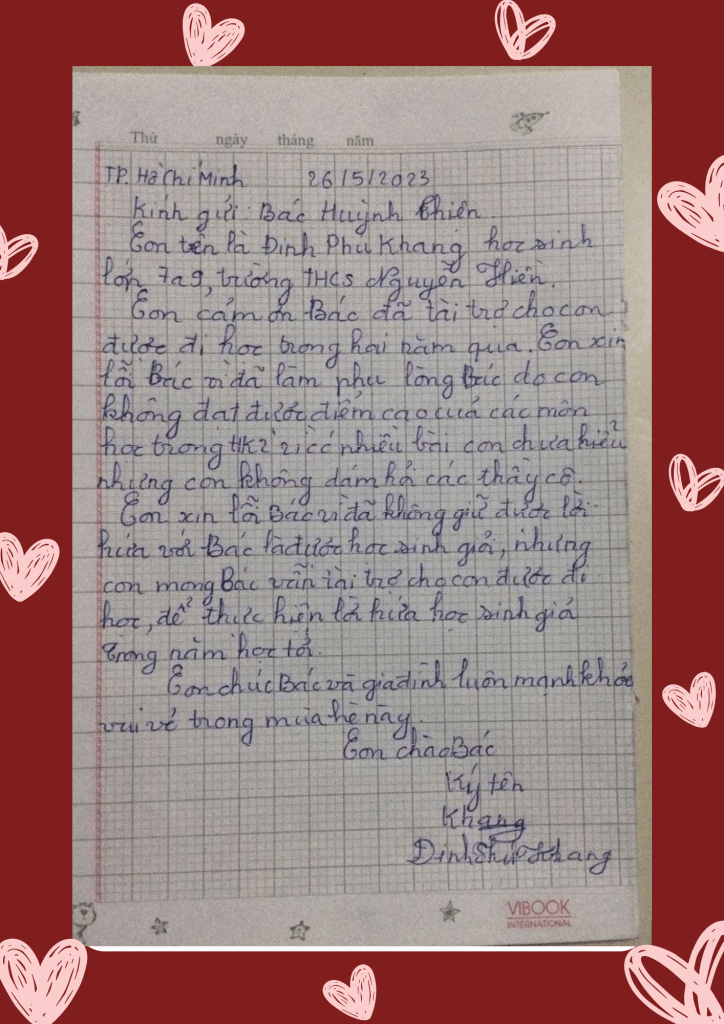 | 028 | 2008 | 300/134/47/22A12 Nguyễn Văn Linh, Bình Thuận, Q7 | Mẹ: Đặng Ngọc Nên | Ông Bà Huỳnh Thiện |