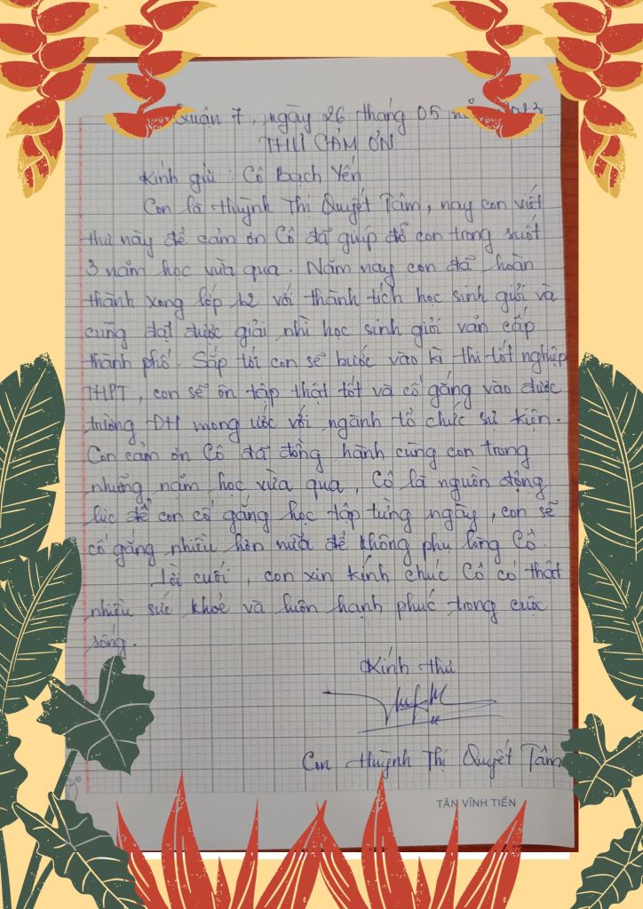 II/ THƯ CẢM ƠN