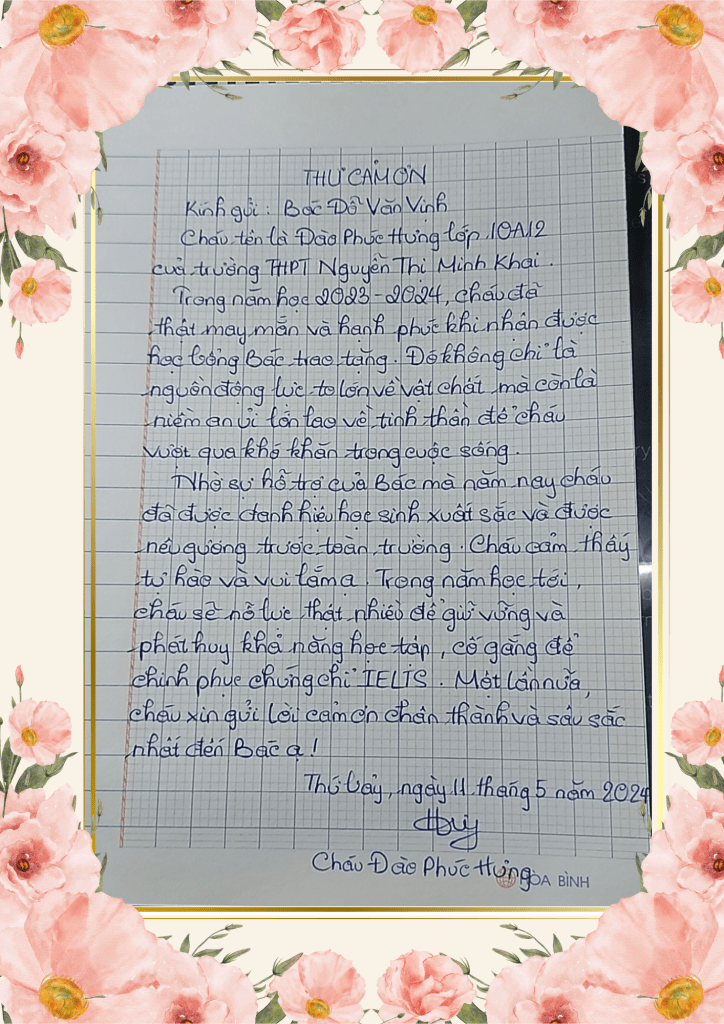 | 009 | 2008 | 1056/20B Huỳnh Tấn Phát, P. Tân Phú, Quận 7, TP HCM | Mẹ: Hồ Thị Ánh Nguyệt | Ông Đỗ Văn Vịnh |