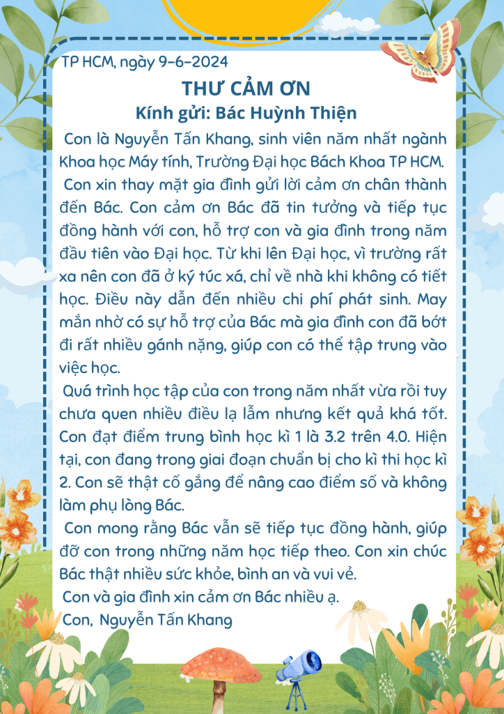 III/ THƯ CẢM ƠN