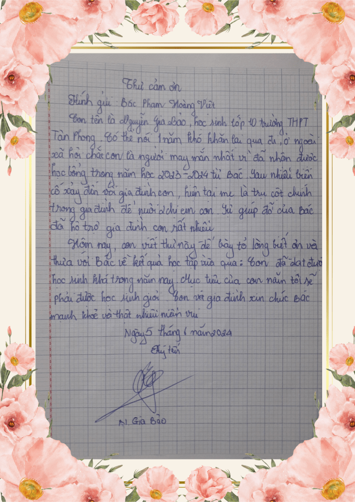 III/ THƯ CẢM ƠN