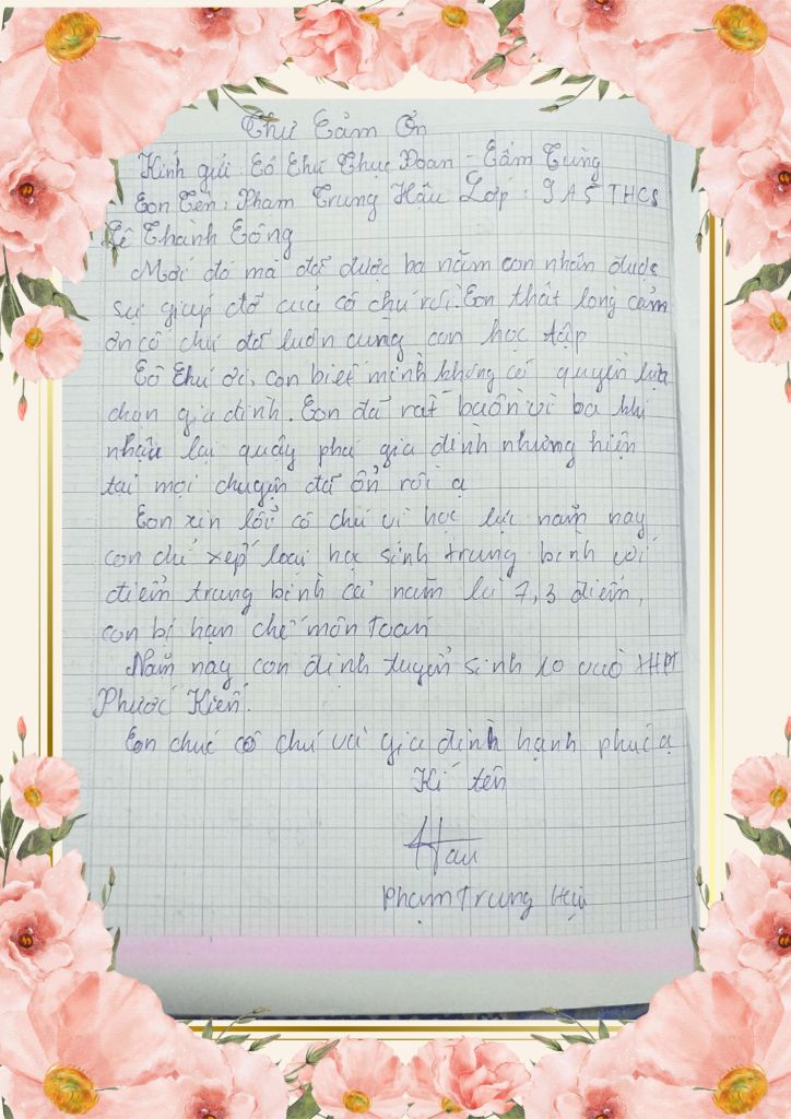 III/ THƯ CẢM ƠN