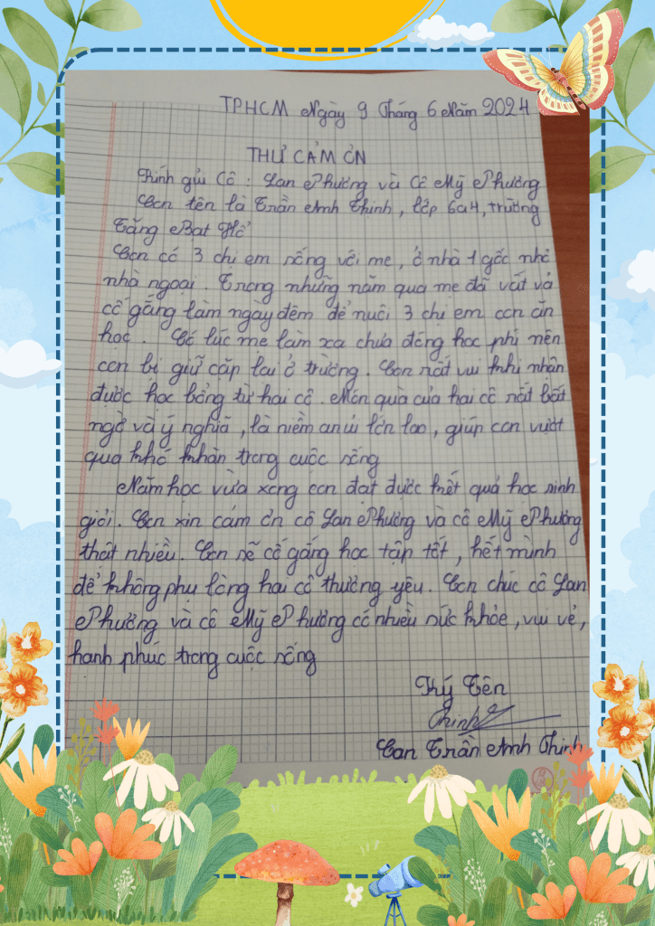 | 094 | 2012 | 262/60/3 Tôn Thất Thuyết, Phường 3, Quận 4, TP HCM | Mẹ: Đặng Thị Cẩm Nhung | Cô Lan Phương và Cô Mỹ Phương |