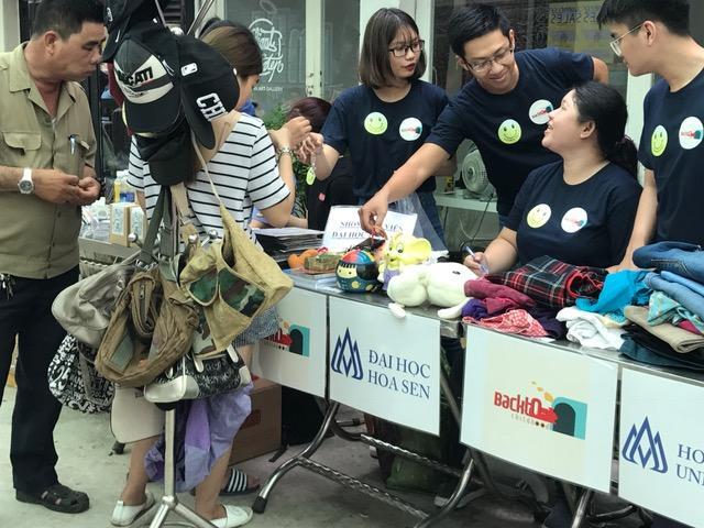 Các bạn sinh viên Đại học Hoa Sen cũng hăng say làm thiện nguyện với 3 quầy hàng đóng góp cho Phiên chợ