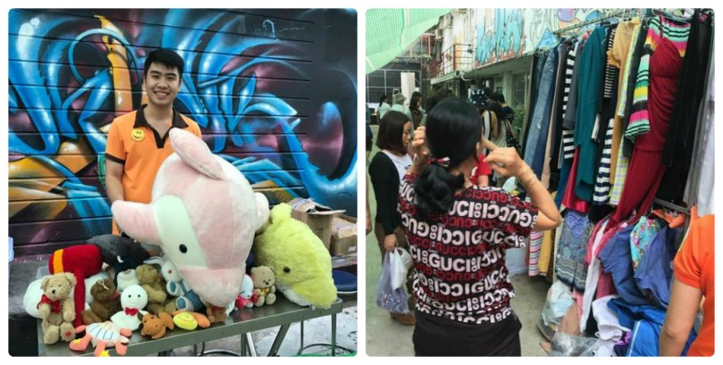 Các quầy hàng quần áo và thú nhồi bông giúp Phiên chợ thêm đa dạng