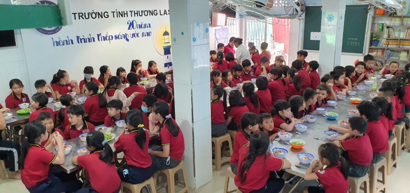 Những bữa cơm trưa tại Trường Tình Thương không chỉ tiếp thêm động lực đến trường cho học sinh, mà còn là niềm vui của phụ huynh khi con em mình được xã hội chung tay chăm sóc.