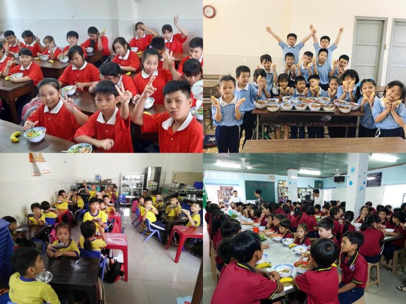 Không chỉ bảo trợ chuyện học, Nụ Cười 3-Em Đến Trường còn có chương trình “Cung cấp suất ăn dinh dưỡng miễn phí cho học sinh nghèo”, hiện đang lo bữa ăn trưa cho 414 học sinh các Lớp học tình thương.